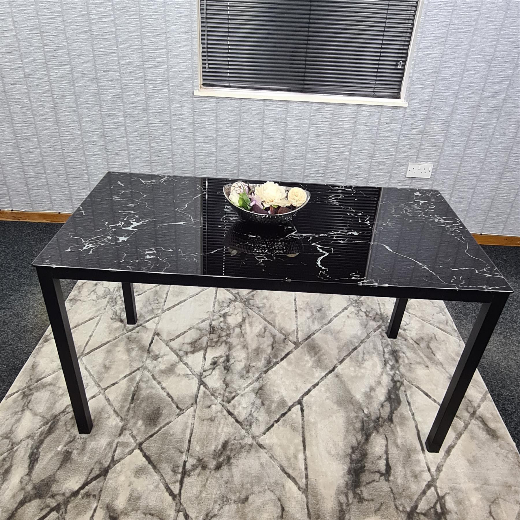 Black Glass Marble Effect Dining Table Set with Velvet Chairs