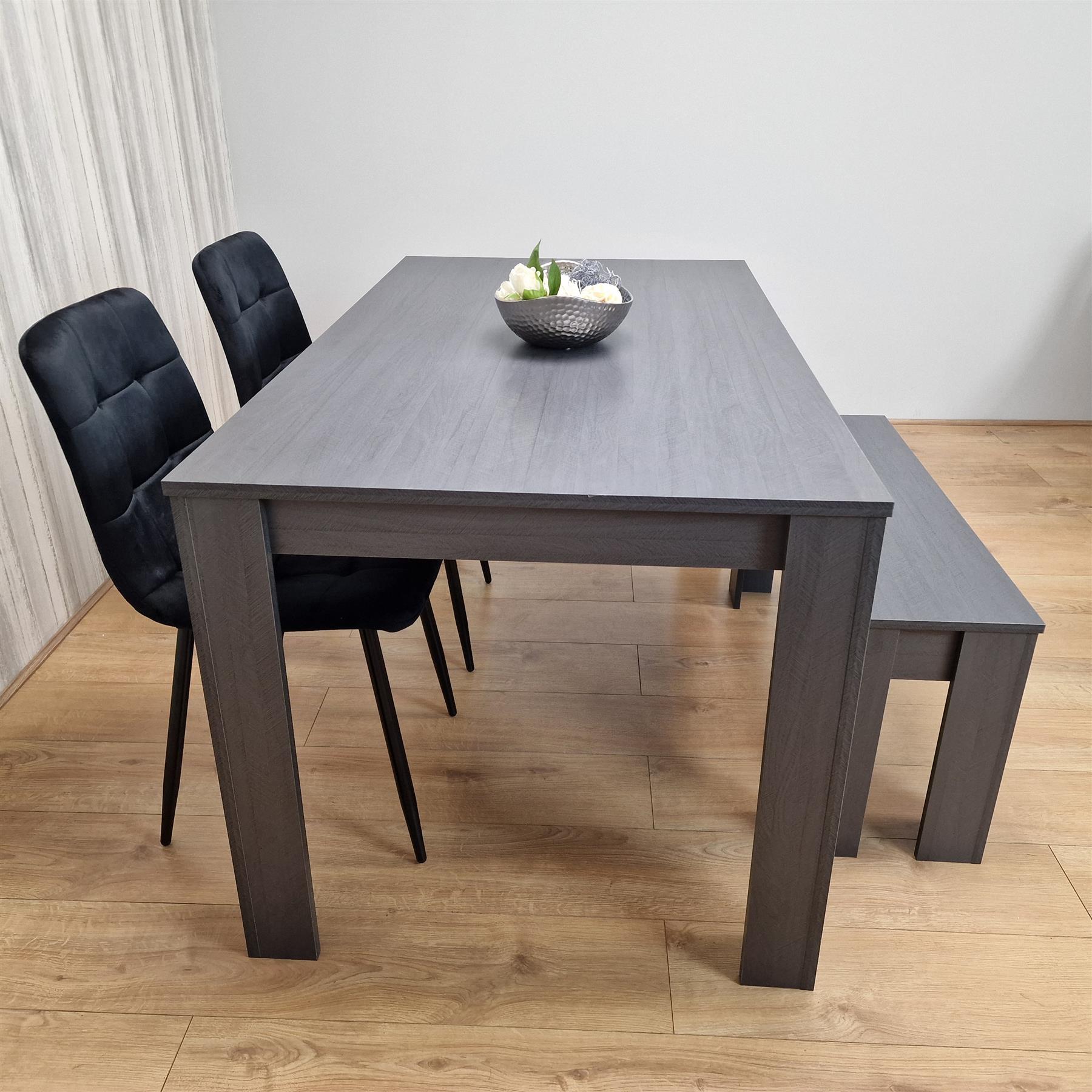 Dining Table and 2 Chairs With Bench Black Dark Grey Velvet Chairs Wood Dining Set Furniture