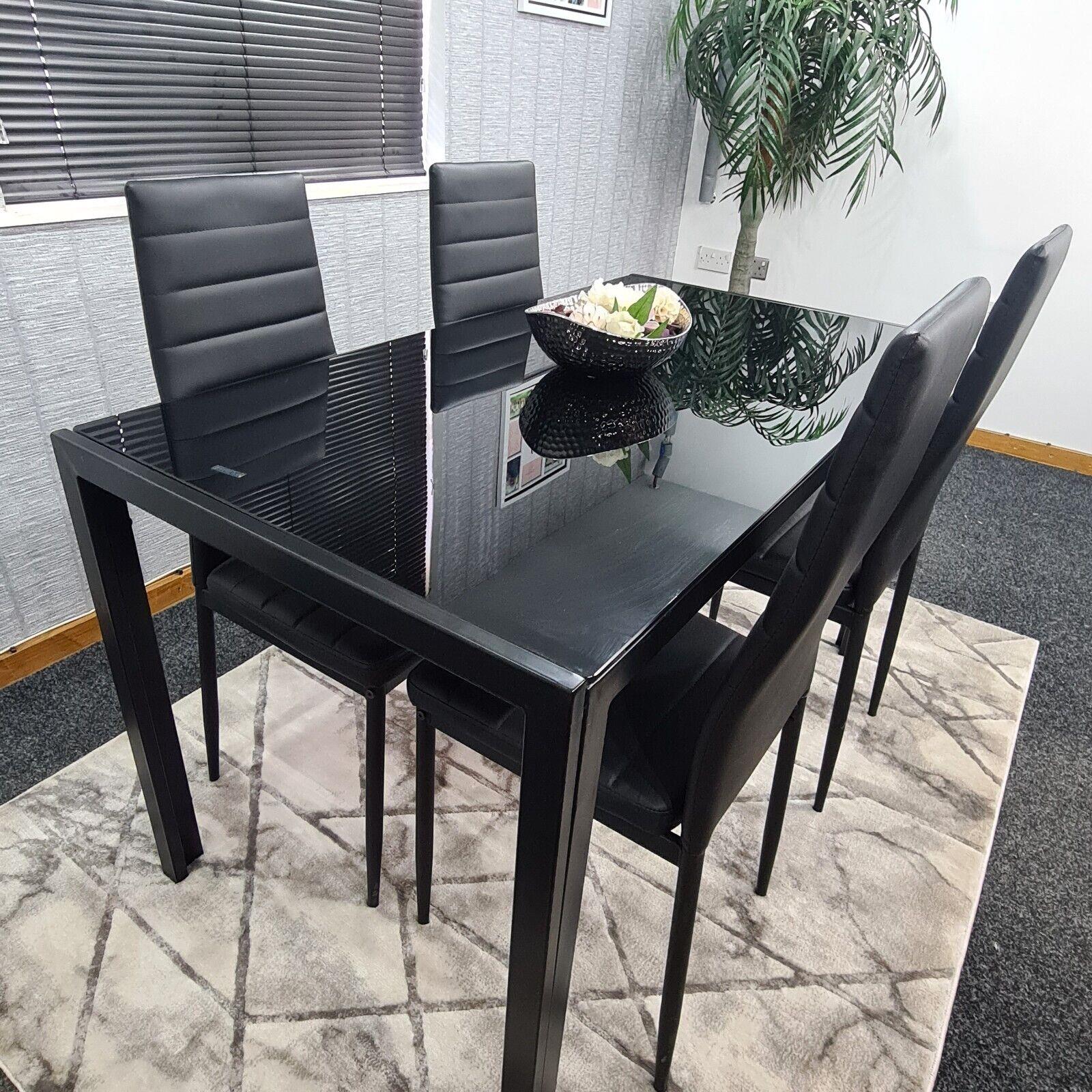 Dining Table and 4 Chairs Black Glass 4 Leather Chairs Dining Room Furniture