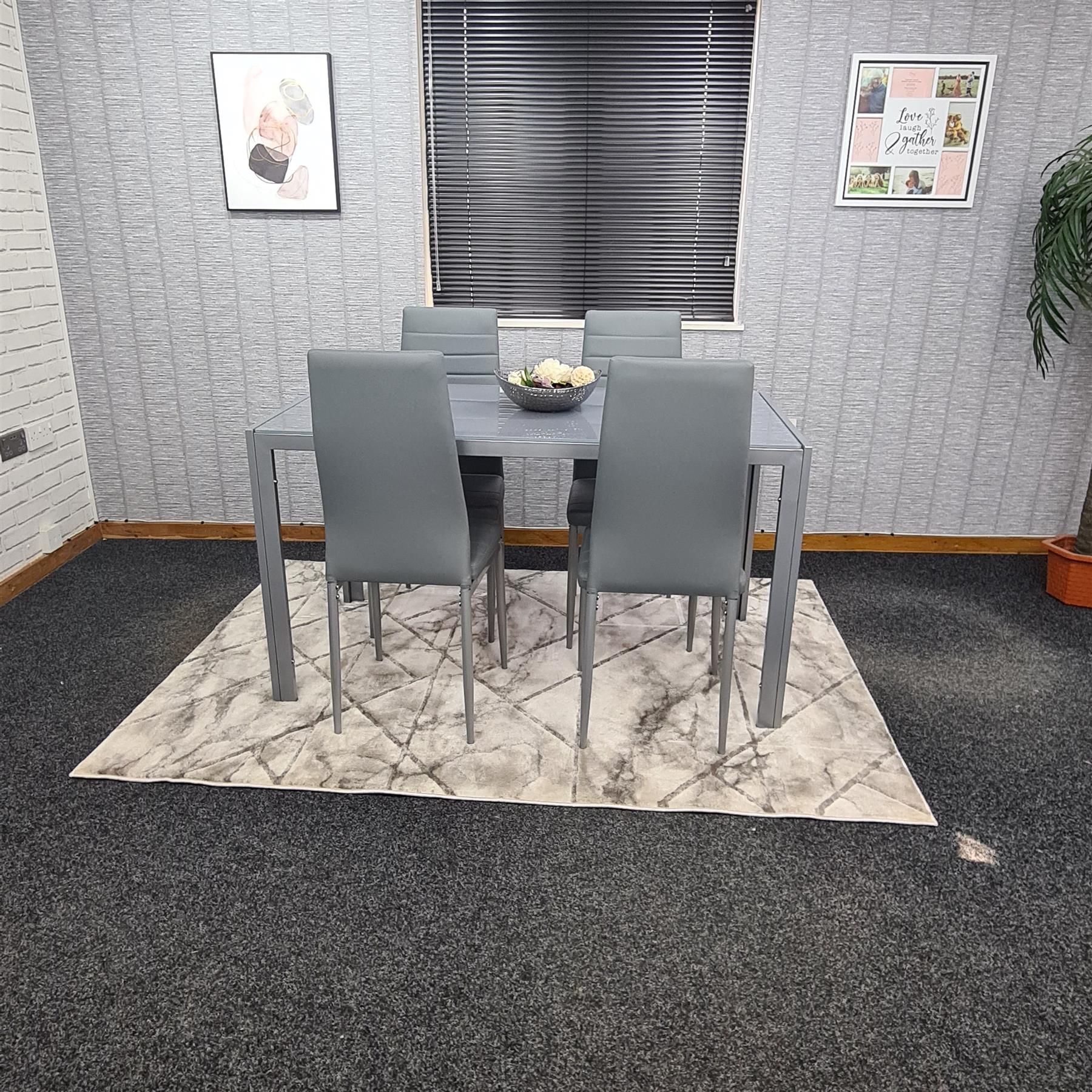 Dining Table and 4 Chairs Grey Glass 4 Leather Chairs Dining Room Furniture