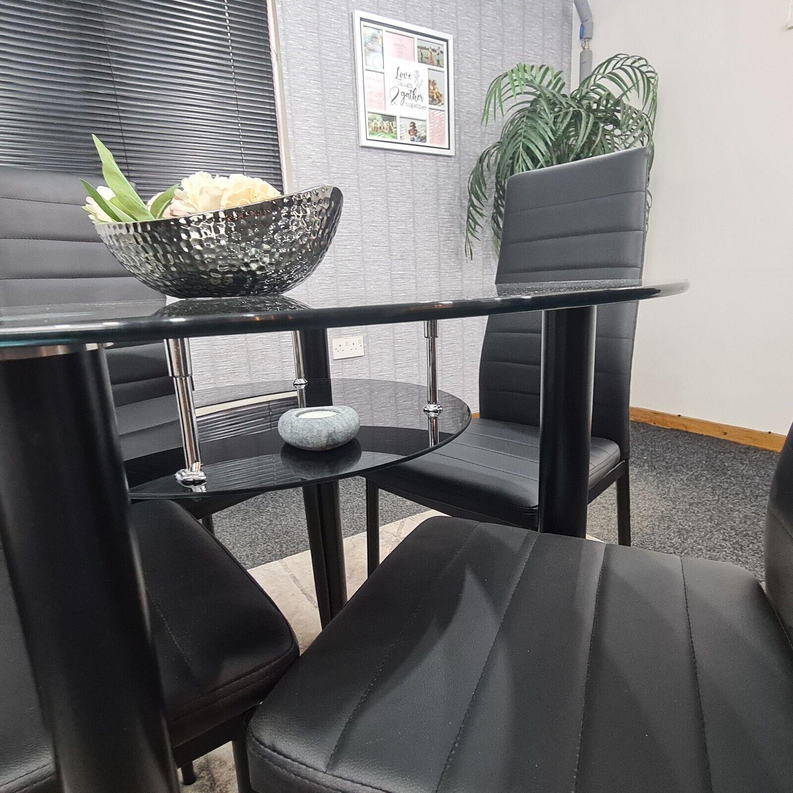Dining Table and 4 Chairs Round Glass Black 4 Black Leather Chairs Dining Room