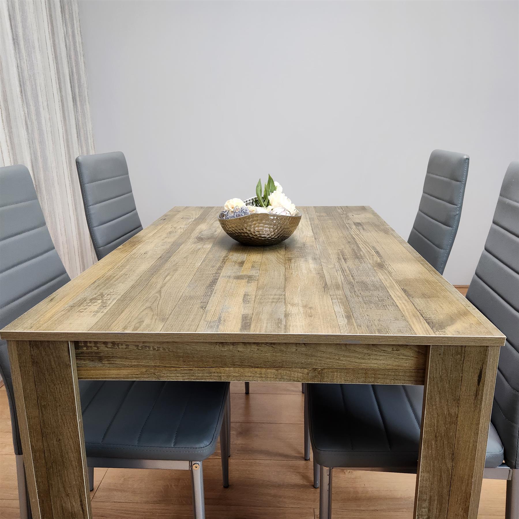 Dining Table and 4 Chairs Rustic Effect Wood Table 4 Grey Leather Chairs Dining Room
