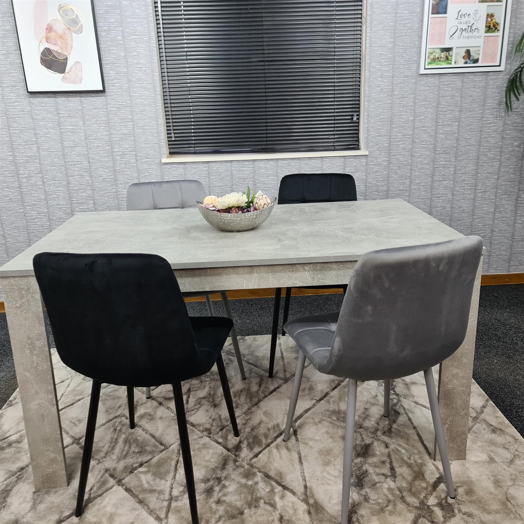 Dining Table and 4 Chairs Stone Grey Effect Wood Table 4 Grey Black Velvet Chairs Dining Room