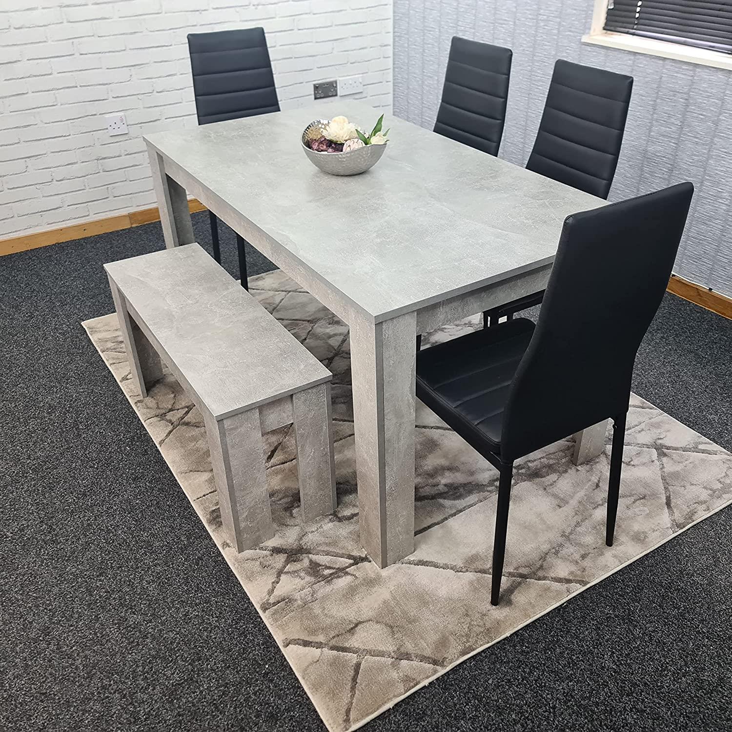 Dining Table and 4 Chairs With Bench Stone Grey Effect Wood Table 4 Black Leather Chairs Dining Room