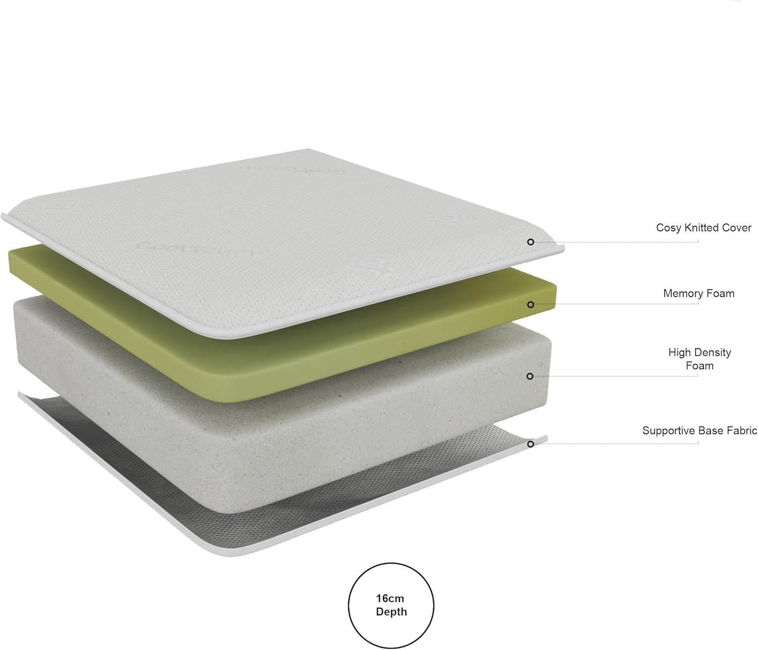 - Memory Foam MattressProvides a firm and supportive sleep surfaceEach foam layer is tested and certified