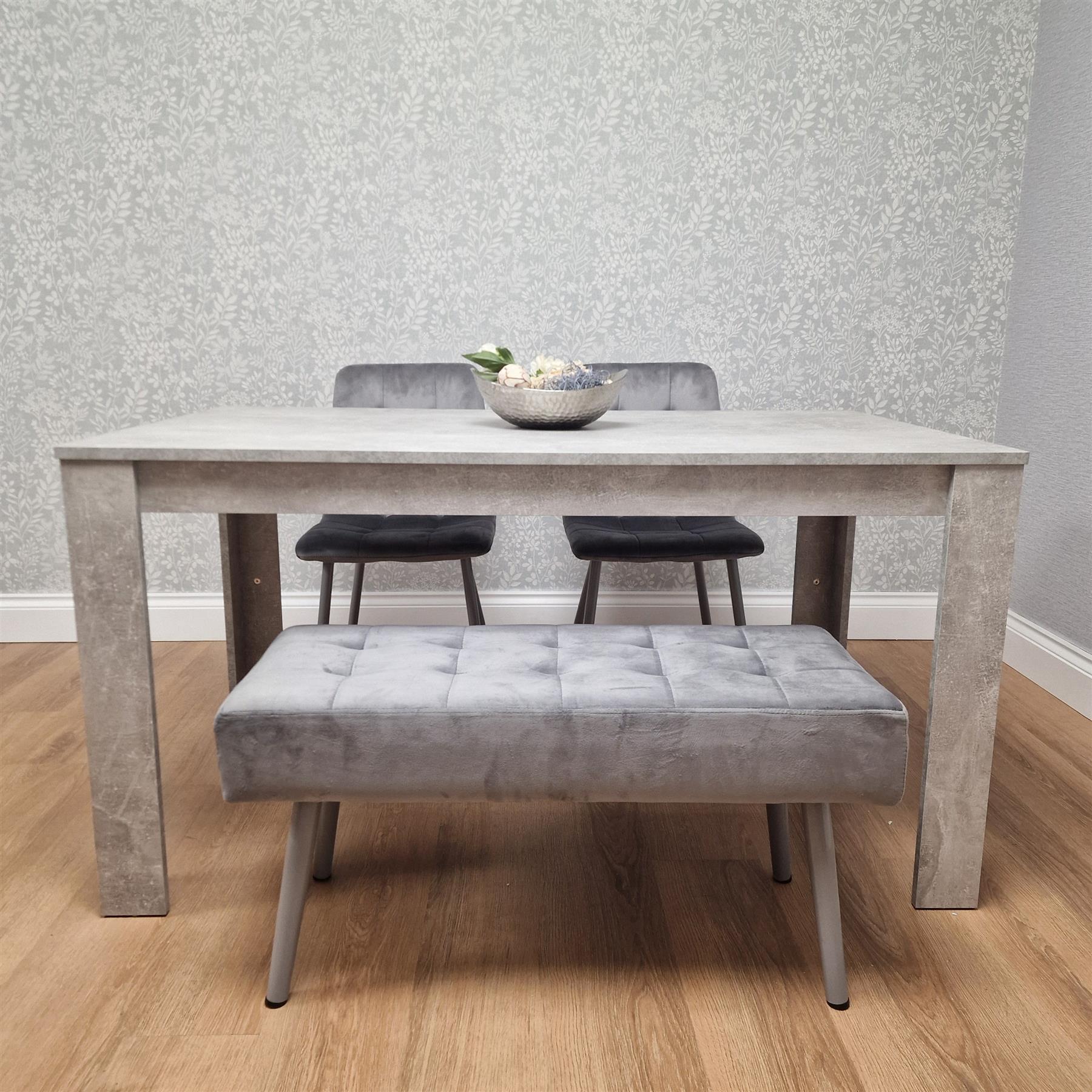 Grey Wooden Dining Table Set with 2 Grey Chairs and 1 Bench - Dining Kitchen Room Furniture