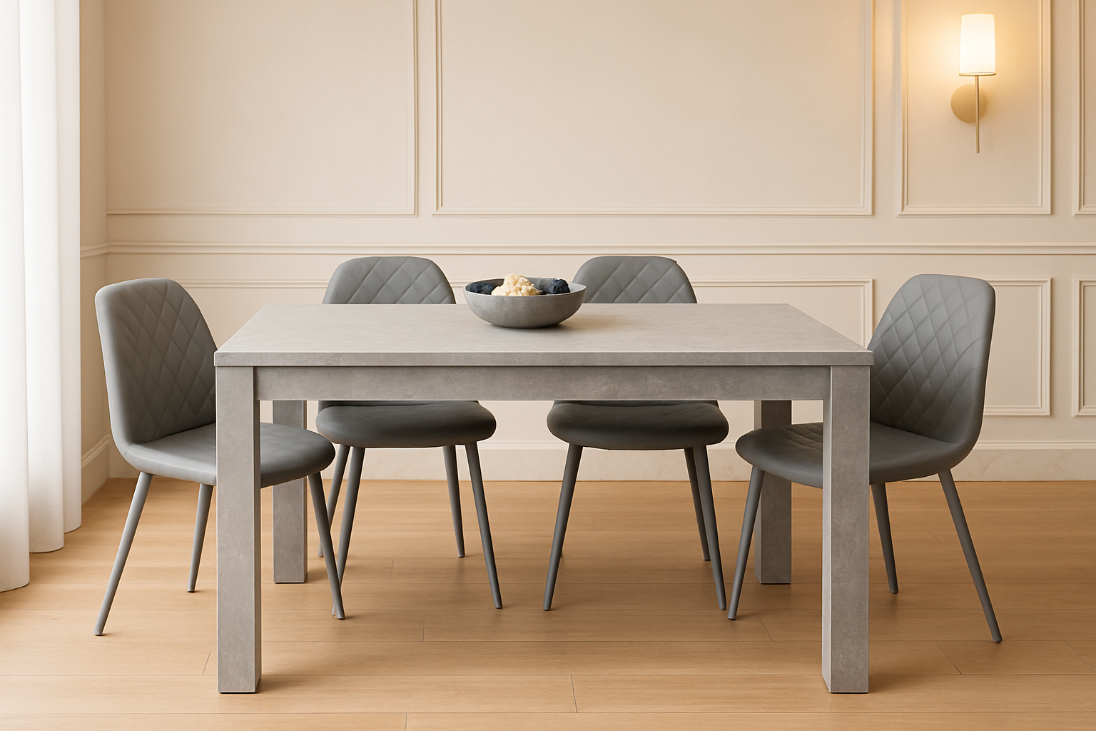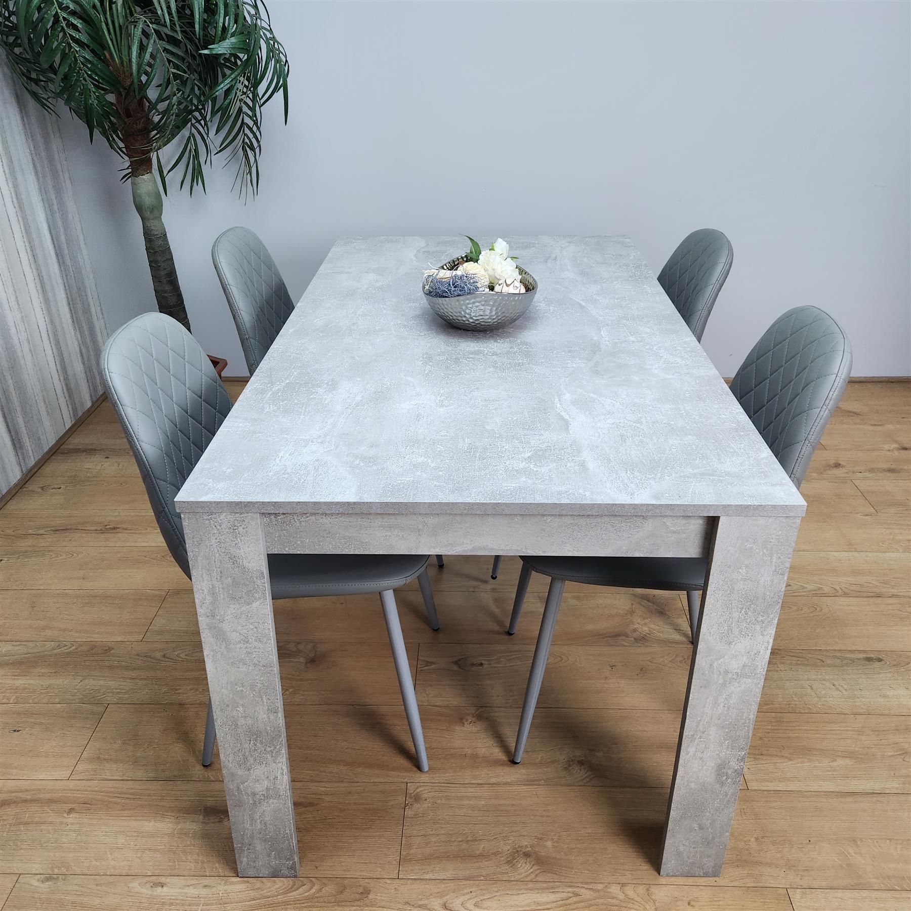 A Stunning wooden stone grey effect Dining Table set with 4 grey gem pattern chairs